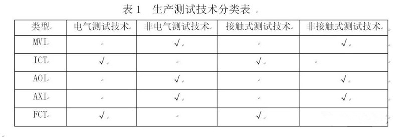 它們可以根據PCBA是否通過加電歸為兩大類:一種是電氣測試技術,一種是非電氣測試技術;也可以根據PCBA是否和測試設備接觸分為兩大類:一種是接觸式測試技術,一種是非接觸式測試技術。見表1,供參考。