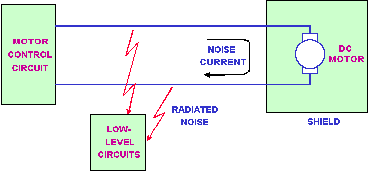了解噪音如何傳輸有助于辨識(shí)電路內(nèi)部的電磁干擾問題。噪音的發(fā)生必需要有來源(source)、藕合路徑(couplingpath)以及易感染的接收器(susceptiblereceptor)[Ott,1988],這三者必需一起出現(xiàn)才會(huì)有EMI問題的存在,圖1說明EMI如何以藕合方式進(jìn)入一個(gè)系統(tǒng)。因此,若是三者之一被排除于系統(tǒng)之外或被減少,干擾才會(huì)消失或降低。圖1是以馬達(dá)控制為例的EMI說明,其中功率級(jí)至馬達(dá)的線圈電流是產(chǎn)生EMI的來源,控制器的低階信號(hào)(數(shù)位或類比信號(hào))是易受干擾的接收器,藕合路徑則可能是經(jīng)由傳導(dǎo)方式(經(jīng)由電源或地線)或輻射方式。